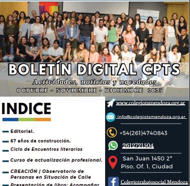 Periódicamente, información y datos relevantes acerca de los temas más importantes, noticias, actividades, invitaciones y novedades del Colegio de Trabajadores Sociales de la Provincia de Mendoza.