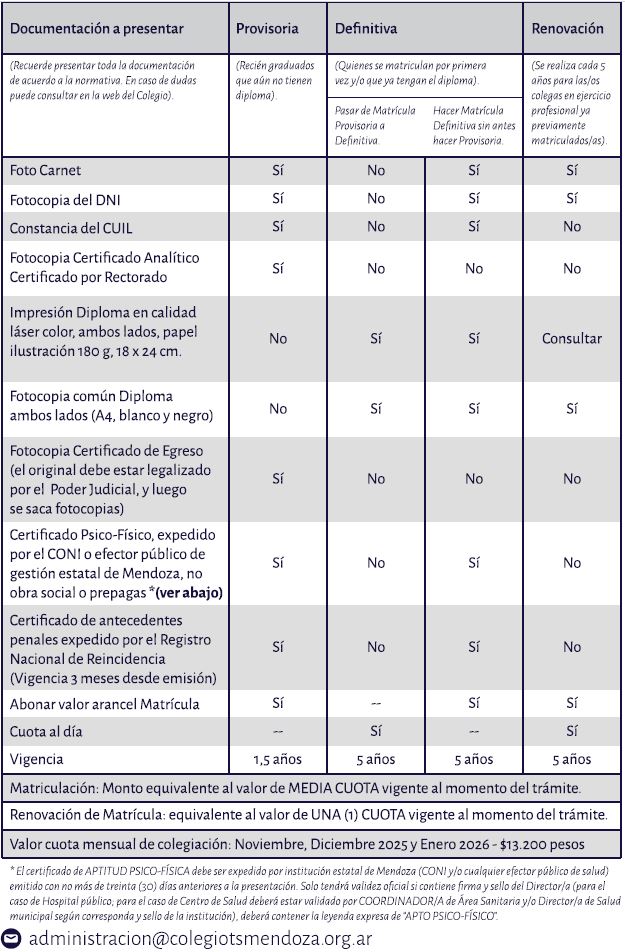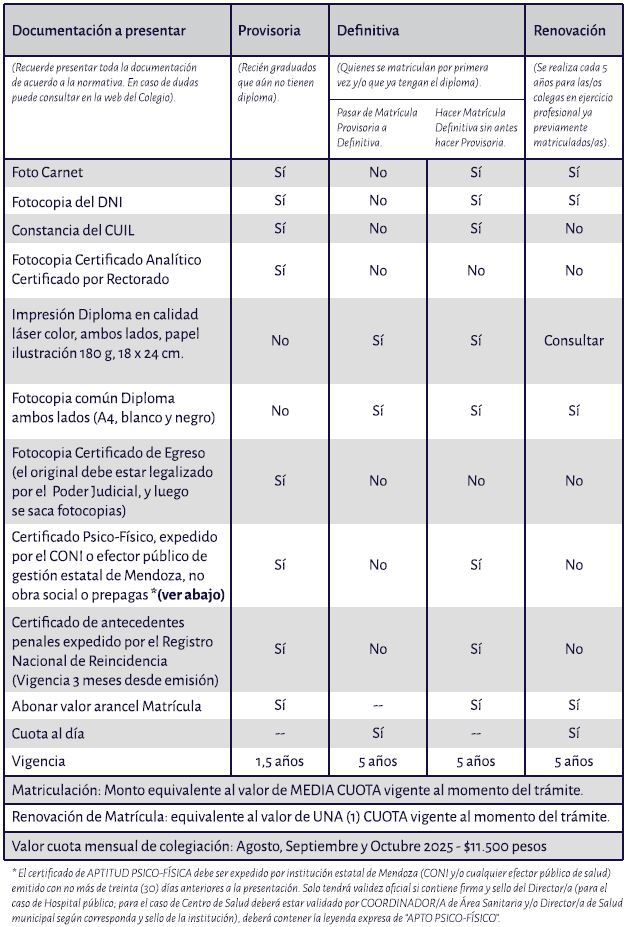 Si la persona todavía no tiene diploma, puede hacer Matrícula Provisoria. Si ya tiene el diploma, la Definitiva. El trámite dura un mes aproximadamente.